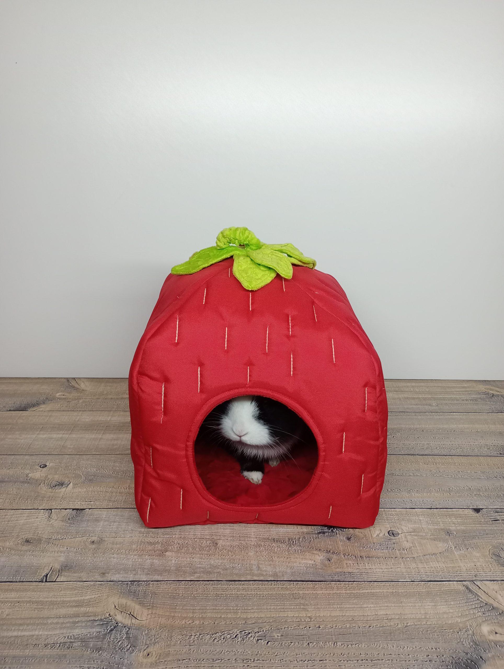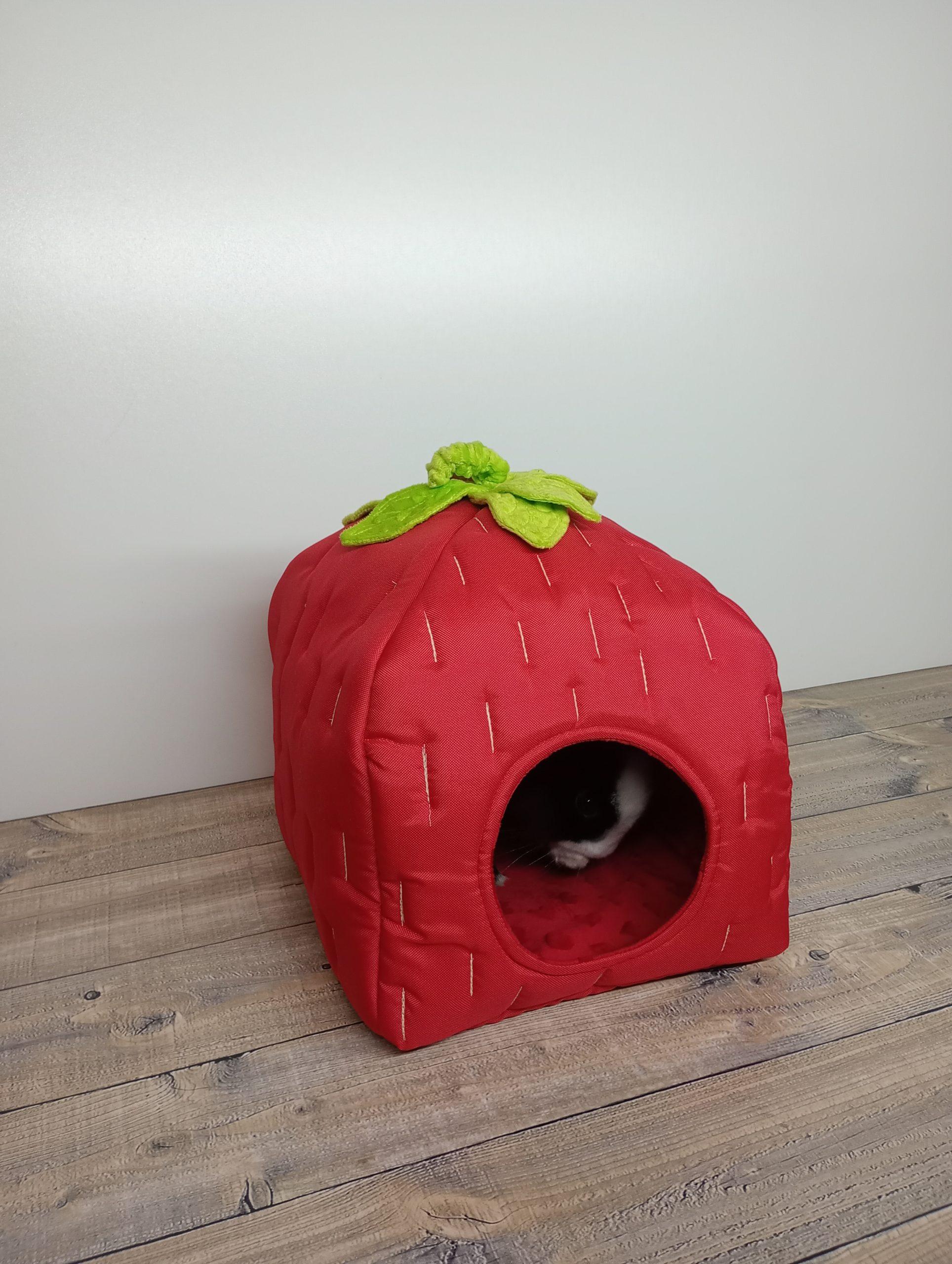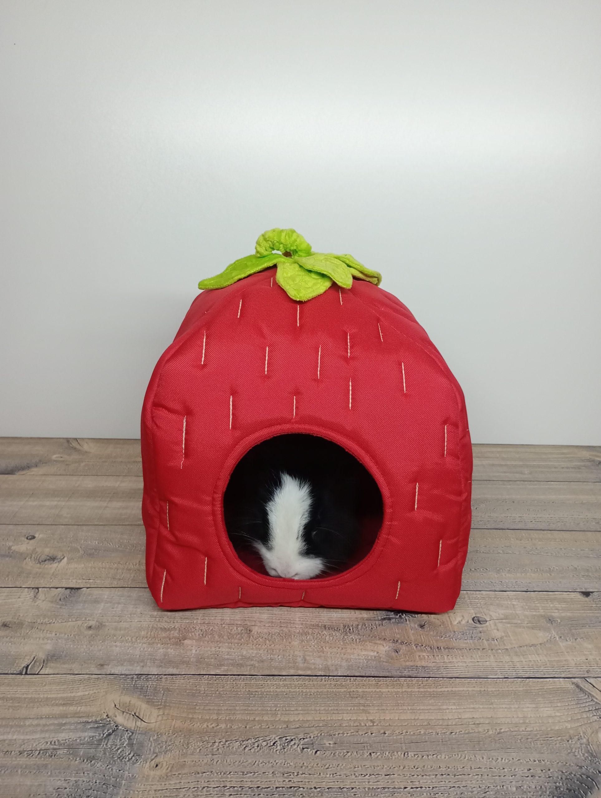 Zadbaj o komfort swojego pupila i spraw mu wyjątkowe miejsce do wypoczynku! Przedstawiamy ręcznie szyty domek dla gryzoni w kształcie truskawki – idealny dla świnek morskich, królików miniaturowych, koszatniczek i chomików. To nie tylko uroczy dodatek do klatki, ale przede wszystkim bezpieczne, ciepłe i trwałe schronienie. To również idealna kryjówka królika.