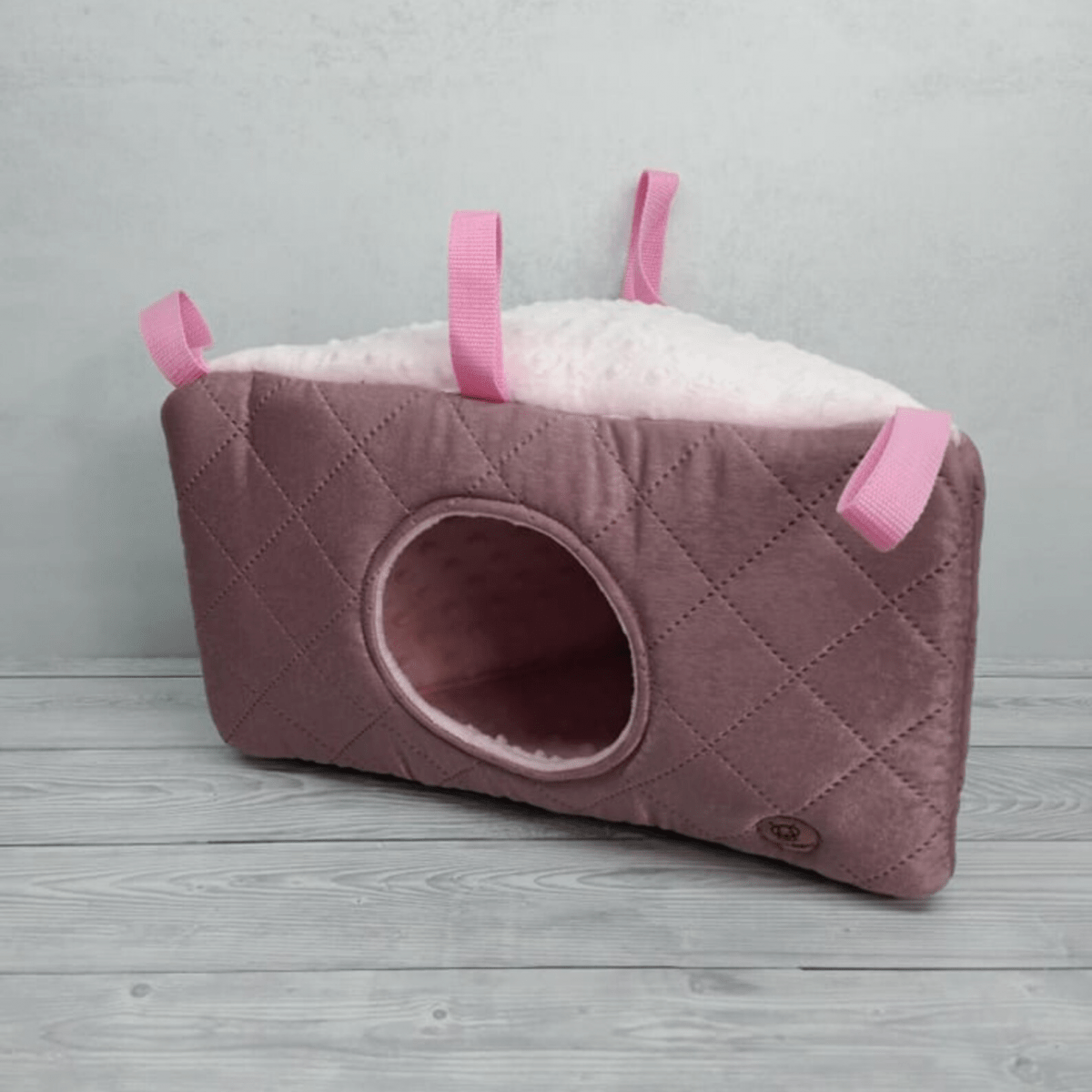 Trójkątny wiszący domek narożny, wykonany z miękkiej tkaniny, to doskonałe rozwiązanie dla świnki morskiej, szynszyli, fretki, szczura oraz innych małych zwierząt. Jego specjalny kształt pozwala na umieszczenie go w narożniku klatki, co oszczędza miejsce i tworzy przytulne schronienie dla pupila.