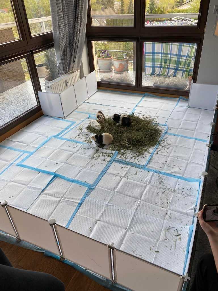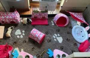 - świnki bez klatkowe – w tym przypadku pokój musi być tak przygotowany, by był bezpieczny dla świnek morskich. Zwierzaki muszą mieć swój kącik, gdzie znajdzie się kuweta, woda, jedzenie, siano, i miękkie posłanie lub domek